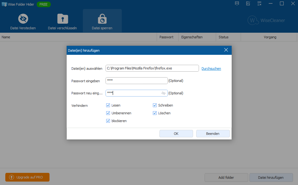 Methode 5. Apps auf Windows 10/11 mit Wise Folder Hider Free mit Passwort schützen