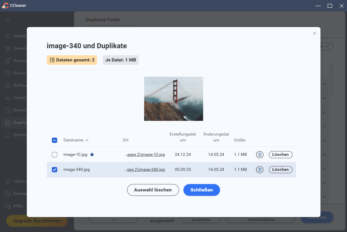 Sollte ich Duplikate mit CCleaner löschen? Wie hilft CCleaner beim Löschen von doppelten Dateien? Wie wir bereits in der obigen Rezension erwähnt haben, bietet CCleaner nur Vorschau für Bilder, nicht für Dokumente wie z. B. Word- , PDF-Dateien. In mancher Fällen enthalten manche Ordner bewusst Kopien, z. B. Backup-Ordner, Export-Versionen, Projektstände („V1“, „final“, „final-final“). Falls man einfach die „älteste“ Datei löscht, kann sie die einzige vollständige Version sein. Obwohl man ein Dokument über seinen Speicherort öffnen kann, ist es ein bisschen zeitaufwendig. Dehalb ist eine Vorschau für Dokumente besonders wichtig.
