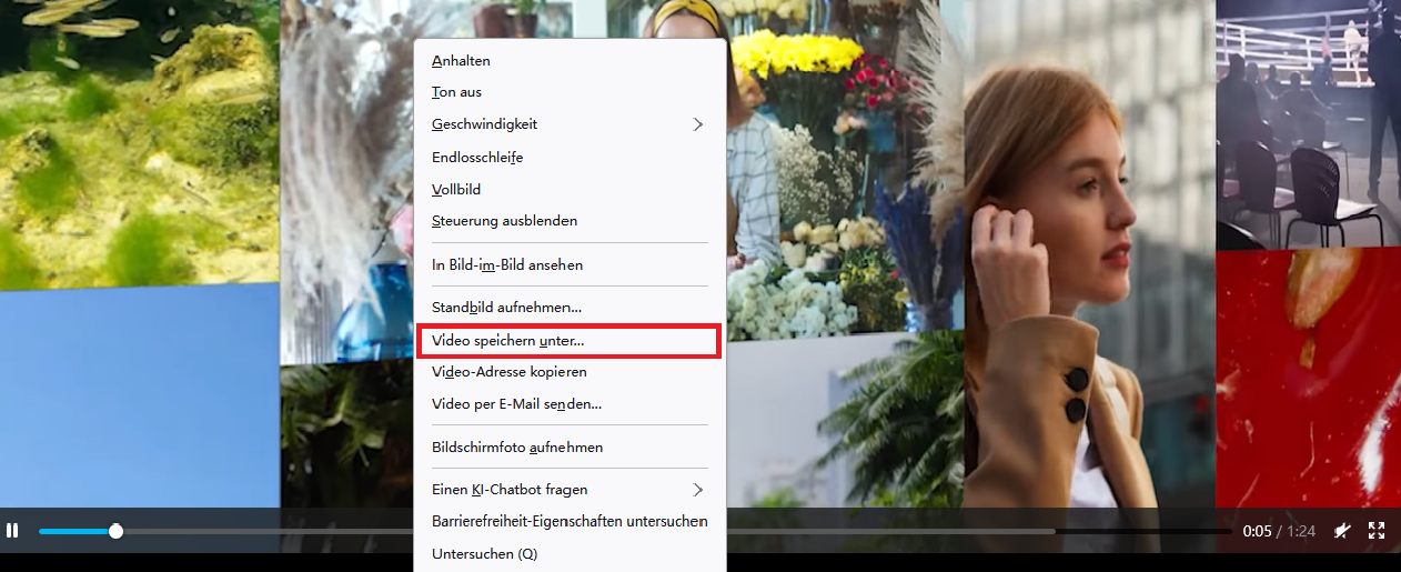 - Klicken Sie rechts auf das Video und wählen „In neuem Tab öffnen“.