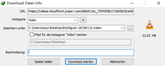 In diesem Fall lässt sich das vollständige Video nicht herunterladen. Ich habe versucht, ein 29-Sekunden langes Video herunterzuladen. Zum Ende wurden nur die ersten 4 Sekunden des Videos erfolgreich heruntergeladen.
