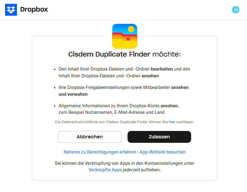 - Loggen Sie sich in Ihrem Browser in Ihr Dropbox-Konto ein, tippen Sie dann auf Zulassen.