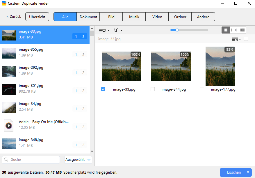 Es geht in dieser Methode um Cisdem Duplicate Finder, der doppelte Fotos, Dokumente, Video, Lieder und alle anderen doppelten Dateien finden kann. Außerdem kann er visuell identische Fotos in verschiedenen Größen order Formaten und visuell ähnliche Fotos finden.