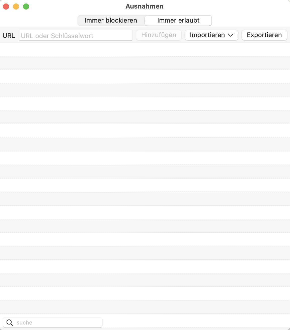 Um eine Website in der Liste zu entfernen, wählen Sie sie aus und klicken Sie auf das rote Minus-Symbol. Alle Pornoseiten lassen sich auch auf einmal entfernen, indem Sie alle auswählen und anschließend auf Rücktaste auf der Tastatur klicken.