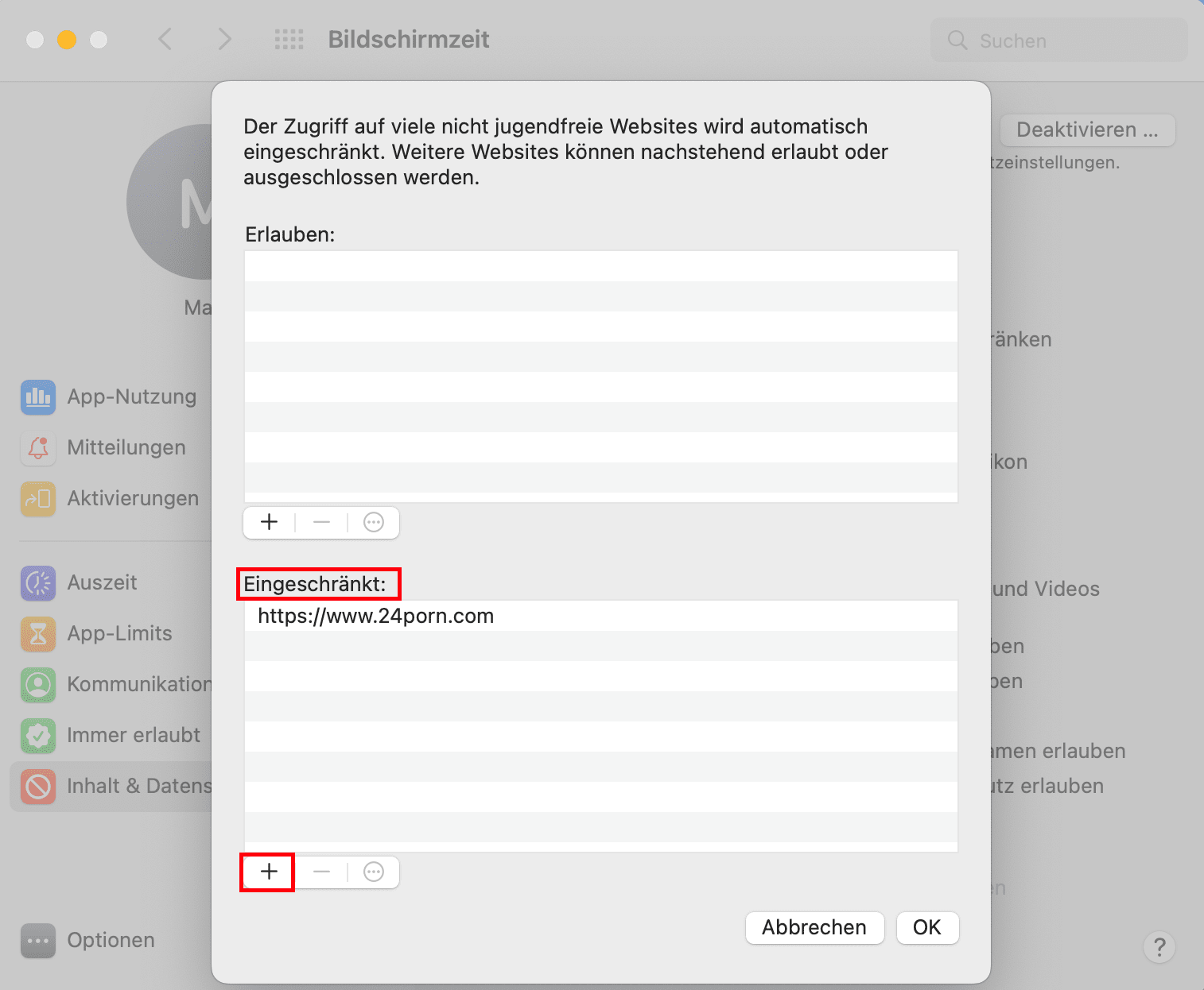 1. Pornos in Safari mit Bildschirmzeit sperren