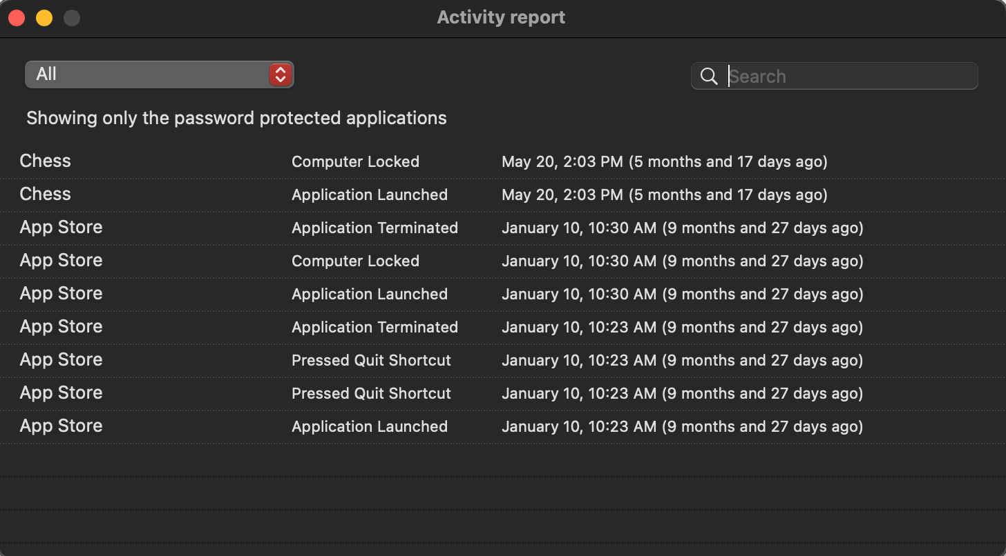Um die Programme zu entsperren, muss jeder das richtige Passwort eingeben. Und Alle Zugriffe auf die gesperrten Programme, ob erfolgreich oder nicht, werden im Aktivitätsbericht aufgezeichnet.