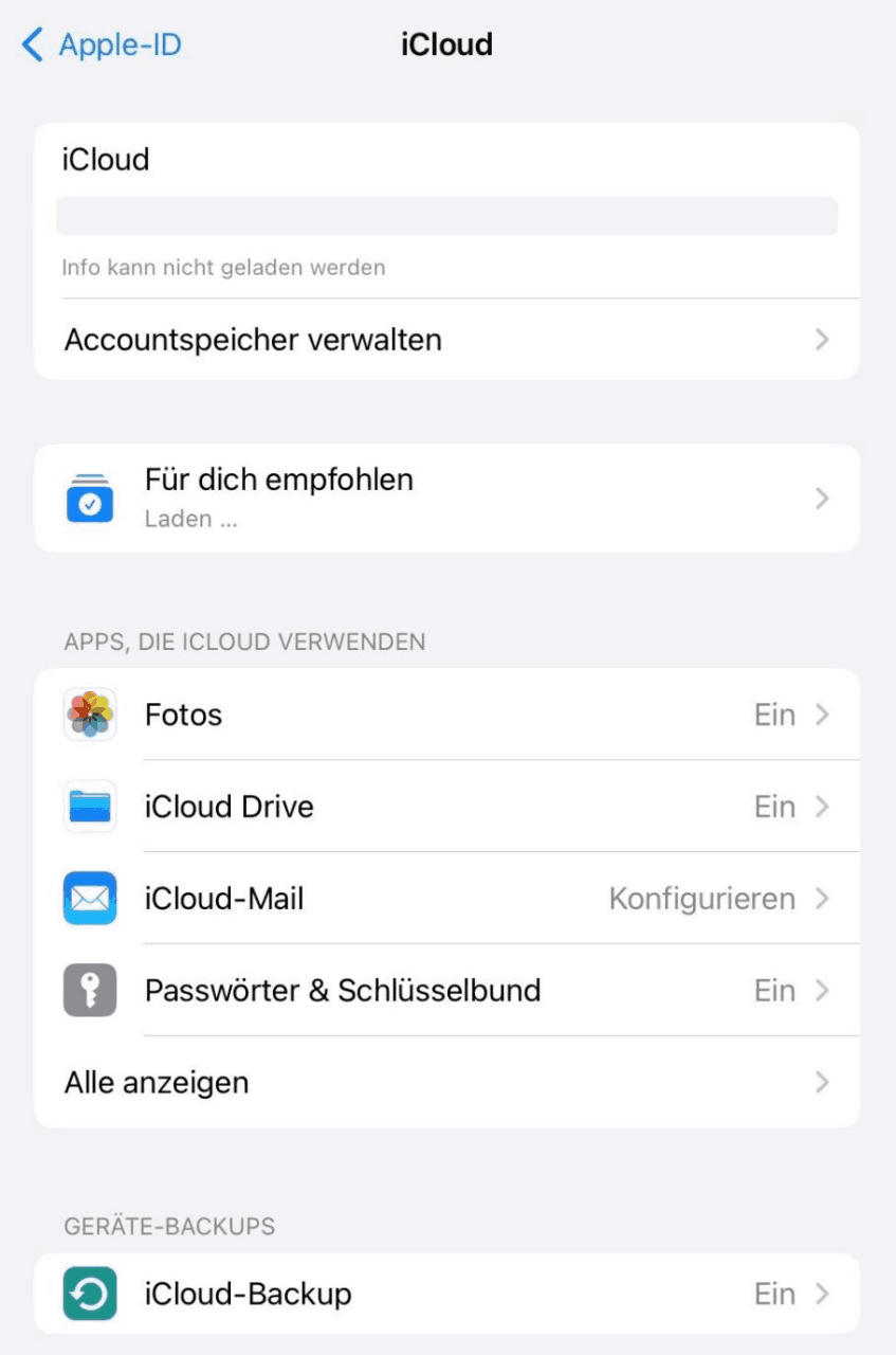 - Auf dem iPhone oder iPad klicken Sie auf „Einstellungen“ > „Apple-Profil“ > „iCloud“ .