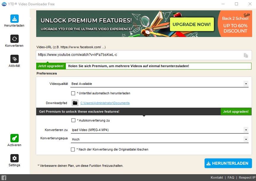 YTD Video Downloader ist sowohl Video-Downloader als auch -Konverter, so dass er die heruntergeladenen Videos in einige andere populäre Formate konvertieren kann, begleitet von einigen grundlegenden Funktionen wie der Steuerung der Lautstärke, dem Neustart der Dateilänge und dem automatischen Download der Untertitel. Allerdings müssen die Benutzer es auf die Pro-Version aktualisieren, um diese Funktionen zu erhalten. Und in der kostenlosen Version gibt es Werbungen.