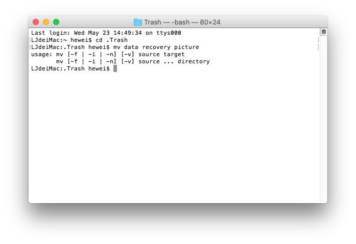 - Luego escriba el nombre del archivo que desea recuperar usando el siguiente comando: mv xxx. Reemplace la parte "xxx" del nombre completo del archivo que eliminó. Presiona "Regresar".