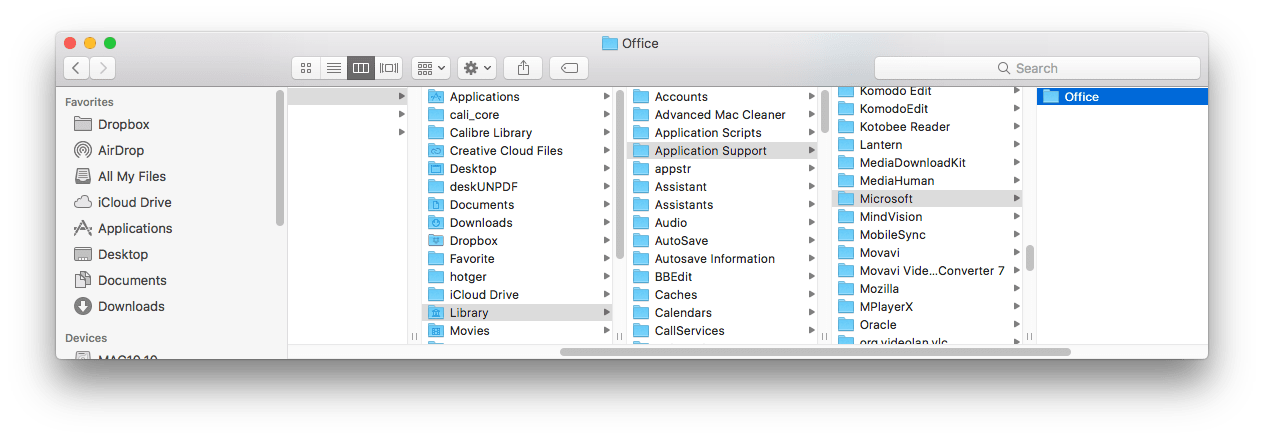 - Presione Mayús+Comando+H para abrir la carpeta Biblioteca y vaya a: /Soporte de aplicaciones/Microsoft/Office/Office 2011 AutoRecovery.