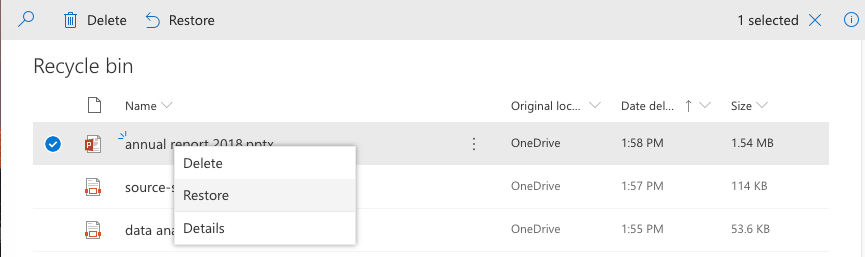 - Haga clic con el botón derecho en el archivo eliminado y elija "Restaurar" para recuperar el archivo de PowerPoint.