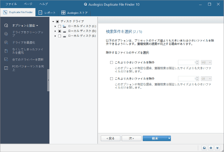 - 一つか複数のフォルダー/ドライブを一度に検索し重複ファイルを見つける