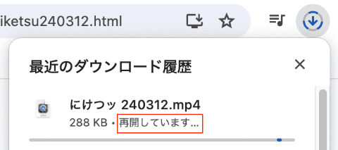 4. ダウンロードする際にずっと「再開しています...」などが表示されていますが、きちんとダウンロード成功できます。