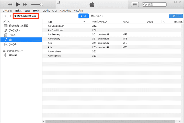 10. これでiTunesにある全ての重複した音楽ファイルを削除できました。