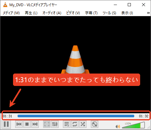 ですが、VLCでそのファイルを再生してみたところ、きちんと2つのタイトルの内容が入っていることが確認できます。