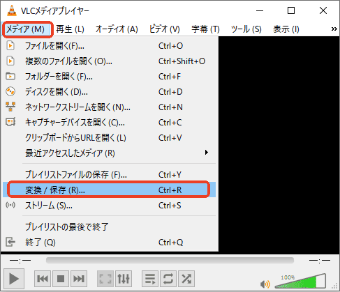 3.そしてVLCを起動し、「メディア」>「変換/保存」をクリックします。