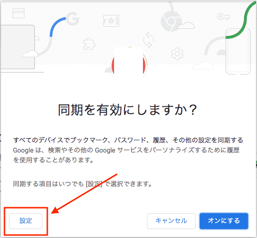 アカウントにログインしてChromeを利用している場合: