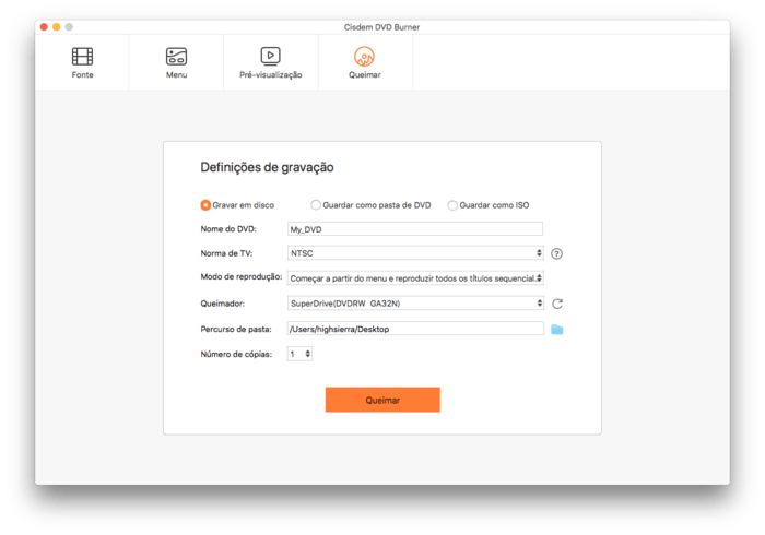Vem com uma interface intuitiva, é muito fácil de gravar seu DVD com apenas 3 passos.