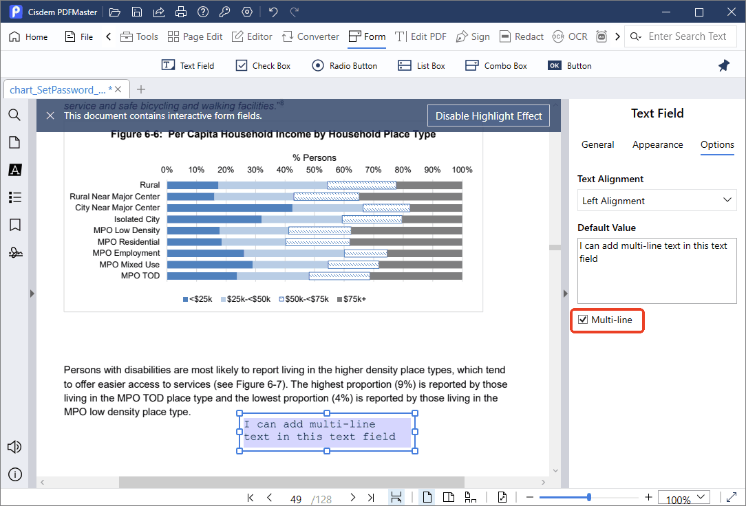 If your PDF is not a form and don’t need interactive fields, Cisdem PDFMaster is capable of adding new text to PDF directly.