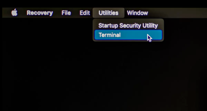 Step 3 Click Utilities on the top menu bar and select Startup Security Utilities.