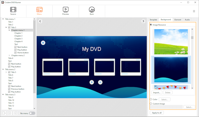 When burning videos to a DVD, a well-designed menu doesn’t just make your disc look professional, it also makes navigation easier for viewers. With Cisdem DVD Burner for Windows, you can create menus not only for DVD titles, but also for individual chapters. This guide will walk you through the steps to add and customize DVD Chapter menus on your PC.