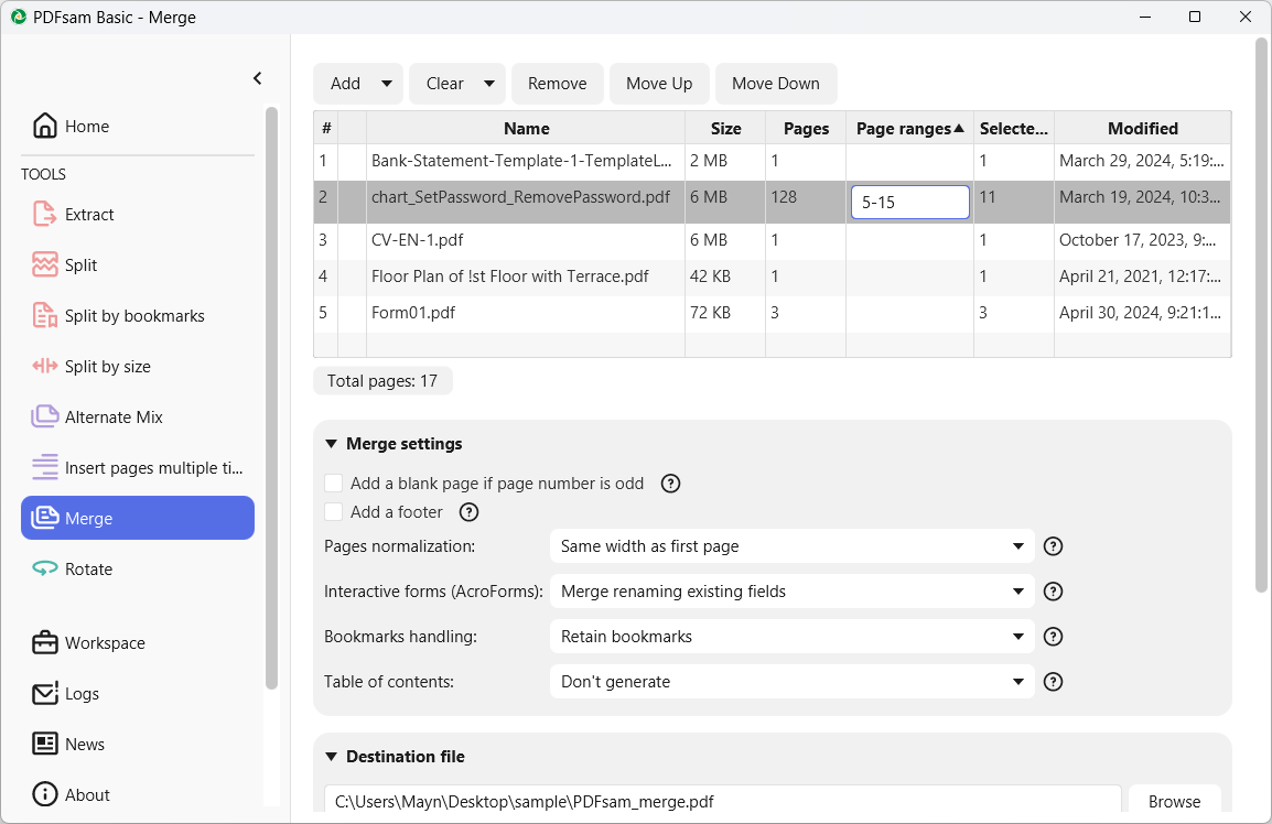 There is one mighty free PDF file combiner that is worth trying — PDFsam Basic. It is also called PDF Split and Merge, which is a free and open-source cross-platform desktop solution that provides users handy tools to merge, split, rotate, extract and mix PDF files. In addition to merging PDF files, it even allows users to merge bookmarks and interactive forms.