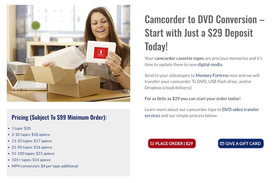 1. Head to the service provider’s website, pick a package like "Videotape to DVD", Pricing typically depends on the number of videotapes you have and your desired final output, such as DVD, USB, and Cloud.