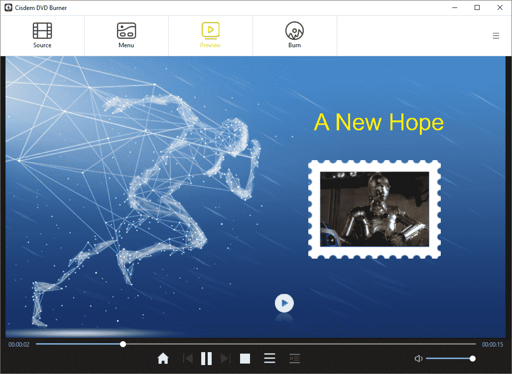 - Subtitle: A New Hope didn't come with subtitles, so I downloaded an English .srt file from a subtitle website and embedded it via Cisdem DVD Burner.