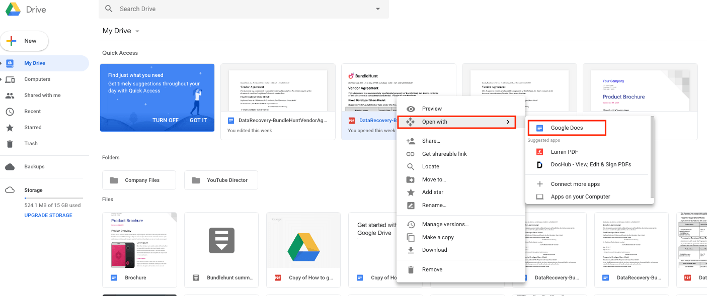 - Open the PDF file with Google Docs, and you will be able to edit the PDF file with ease.