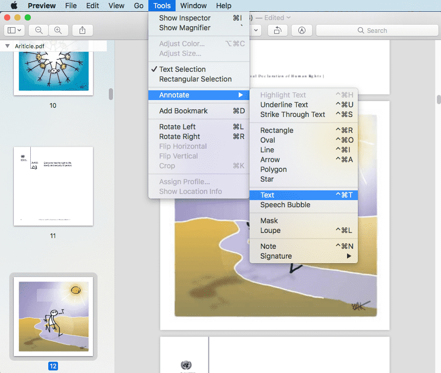 - Click Show Markup Toolbar icon and choose the Text tool.