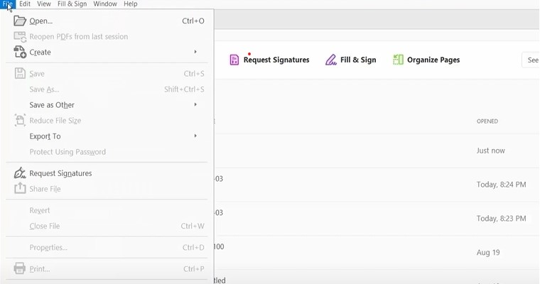 - Start Adobe Acrobat Pro. Press the File tab from the top-left corner of page and open the read-only PDF for editing.
