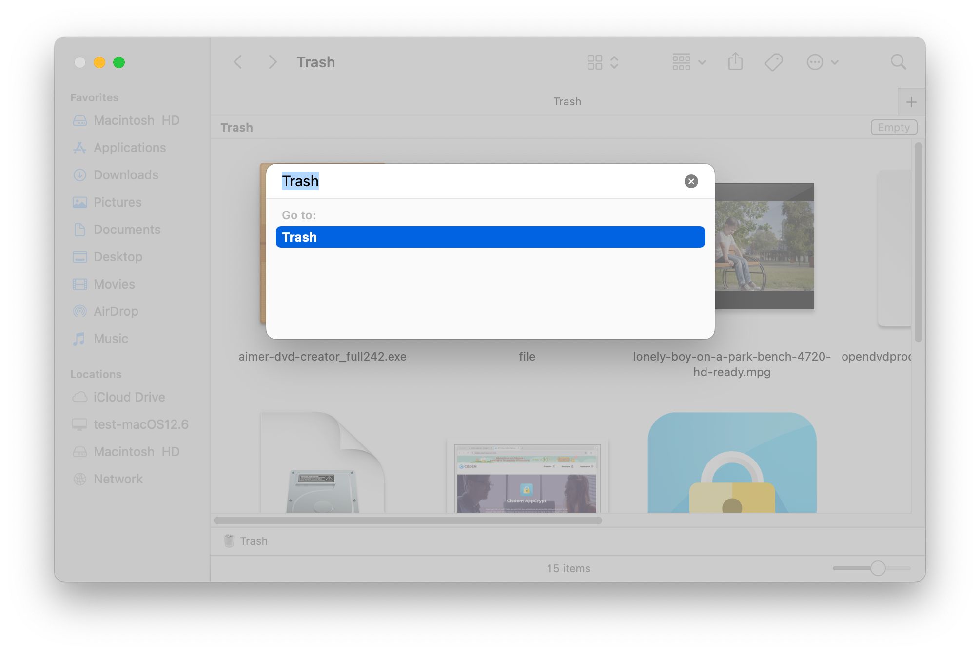 Tip: If your Trash folder is located on an external drive or elsewhere, enter the detailed path /.Trashes/.
