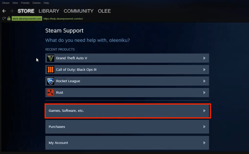 - In Steam, select Help from the menu bar > click Steam Support.