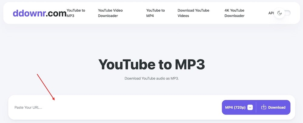 - Open https://ddownr.com/en/youtube-downloader, paste the YouTube link into the specified field.